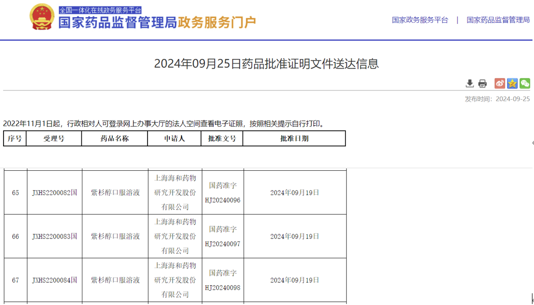 今日,上海海和藥物研究開發(fā)股份有限公司(以下簡稱“海和藥物”)和韓國大化制藥公司(以下簡稱“大化制藥”)共同宣布:雙方合作開發(fā)的紫杉醇口服溶液(研發(fā)代號:RMX3001)獲得國家藥品監(jiān)督管理局(NMPA)批準(zhǔn)在中國大陸上市;用于一線含氟尿嘧啶類方案治療期間或治療后出現(xiàn)疾病進(jìn)展的晚期胃癌患者的治療。